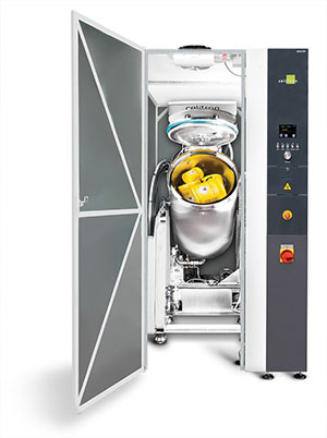 The high grade (316L) stainless steel vessel conforms to the Pressure Equipment Directive (PED) and is fitted with a motor-driven shaft, with powerful shredding / crushing blades that can rotate in two directions to reduce the size and volume of the waste down to 20%. The vessel is constructed with internal sprinklers for automatic cleaning and is equipped with one door, provided with an automatic locking mechanism.